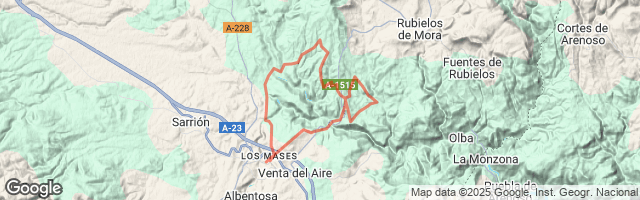 Salimos de los Mases en dirección a rio Mijares cruzamos y en direccción a Rubielos, cruzamos el Palomarejos, de vuelta iremos hacia el rio Mora y de éste volveremos a cruzar el Mijares, el Albentosa y a casa. Es todo por pistas poco frecuentadas y con unas vistas impresionantes. Los ascensos son cortos, algunos con bastante pendiente, tanto de subida como de bajada.