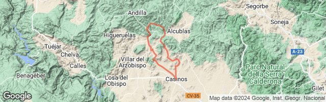 La parte más distal de la ruta transcurre por el término de Alustante, muy muy cerca del de Orea, por la conocida Cañada Real de Merinas, la cual se abandona hacia la izqu
