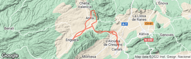 Pistas y sendas fáciles entre Canals, Anna y Enguera. El almuerzo es en un bar de Enguera con cremaet y chupitos incluidos.