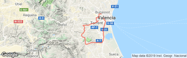 Ruta bastante rodadora pero con un par de senditas. La primera pasamos por un bosque de robles Valencianos y la segunda accedemos al yacimento.