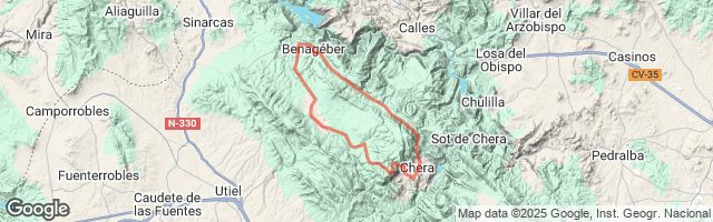 Salimos de los Mases en dirección a rio Mijares cruzamos y en direccción a Rubielos, cruzamos el Palomarejos, de vuelta iremos hacia el rio Mora y de éste volveremos a cruzar el Mijares, el Albentosa y a casa. Es todo por pistas poco frecuentadas y con unas vistas impresionantes. Los ascensos son cortos, algunos con bastante pendiente, tanto de subida como de bajada.